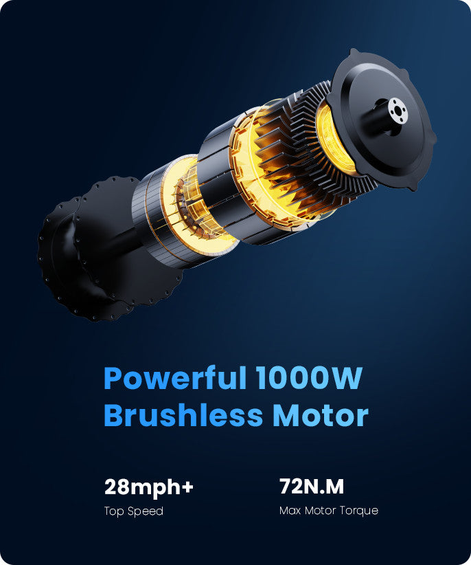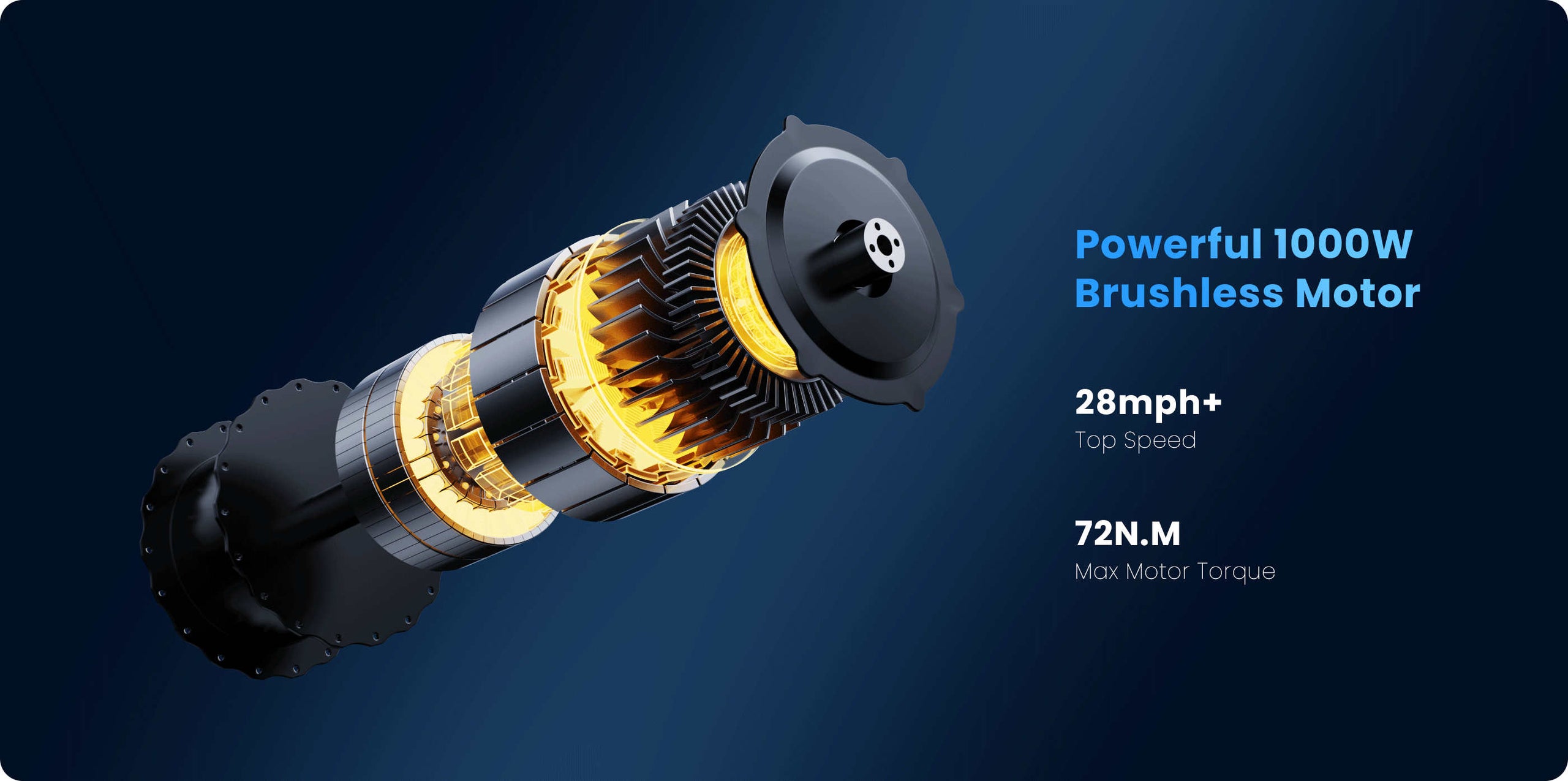 Conquer steep hills and commute across the city with the powerful 1000W motor. Effortlessly accelerating from 0 to 20mph in merely 6 seconds. Power over challenging terrain with confidence.