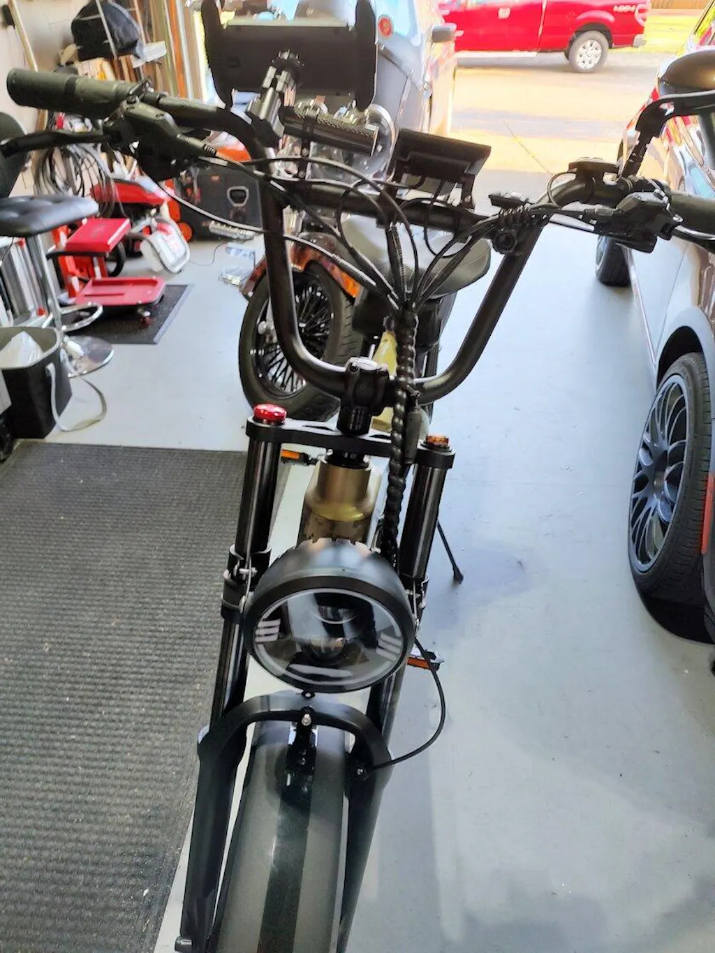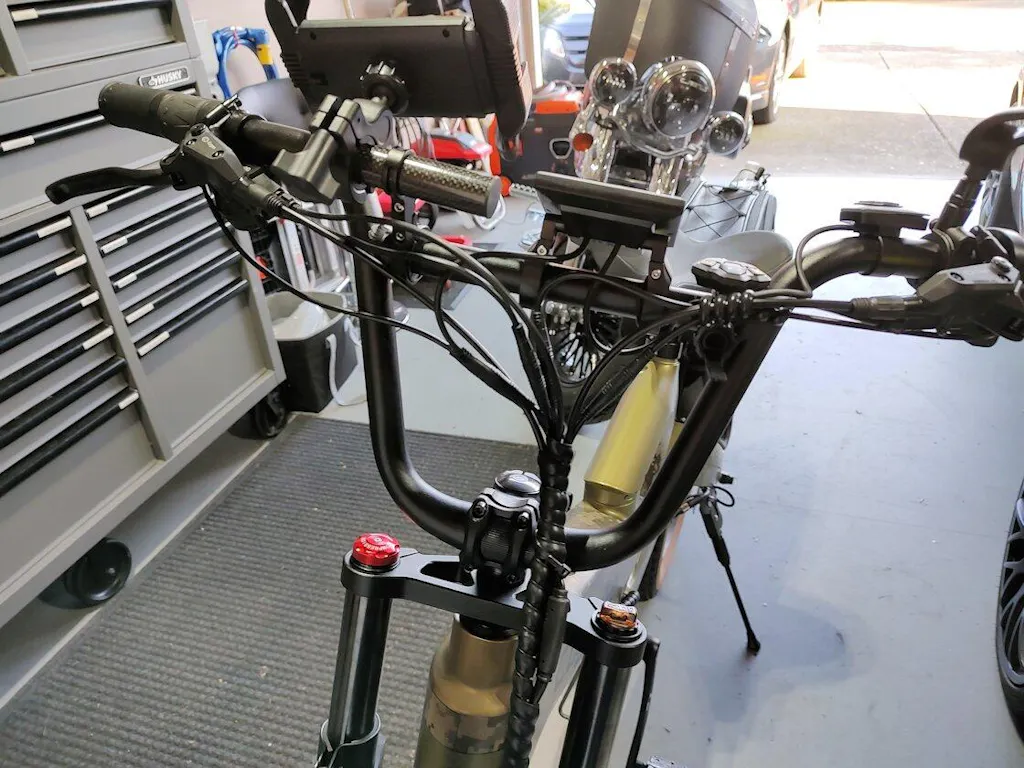 *The handlebar mount needs some improvement as it is difficult to keep this assembly from moving/swinging if too much pushing is put against it (especially when getting on/off the Ebike). A friend suggested to use a folded sheet of sand paper, facing both mount surfaces to provide a more friction fit.